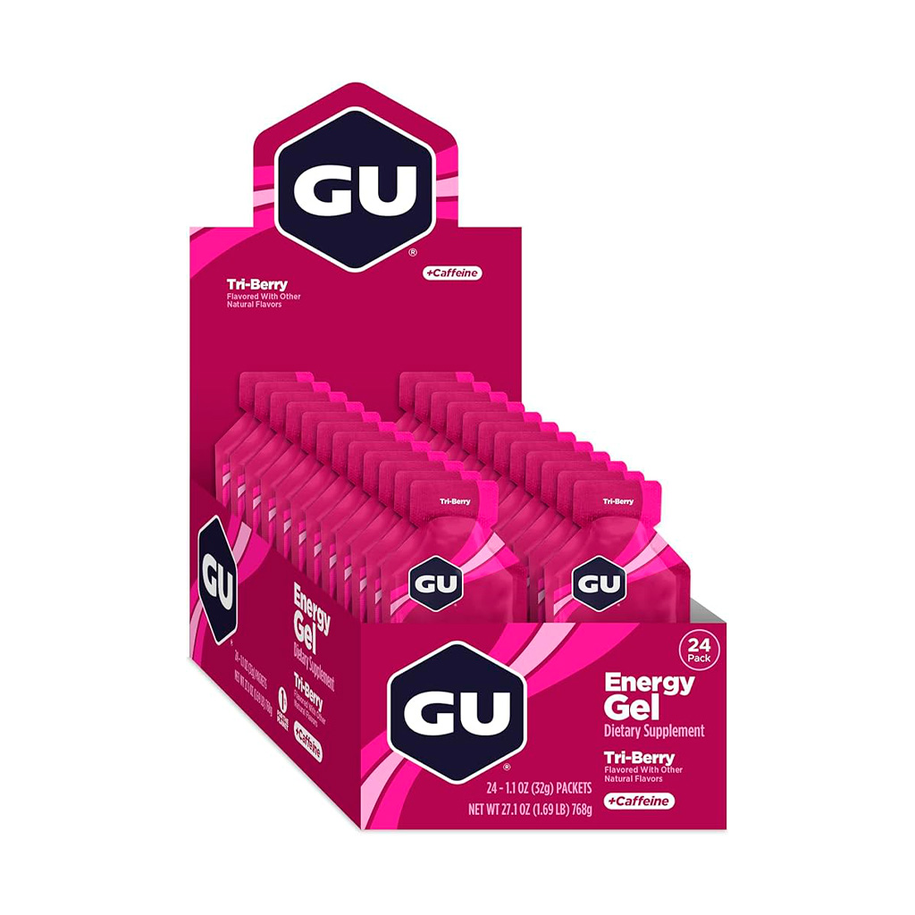 GU Energy Gel Triberry Caja 24 con Cafeína. A través del entrenamiento, nos hacemos más fuertes, nos exigimos y aprendemos a soportar más. GU posee los nutrientes adecuados, en las cantidades adecuadas, para así formar nuestros músculos, reparar nuestro cuerpo y optimizar nuestro rendimiento.